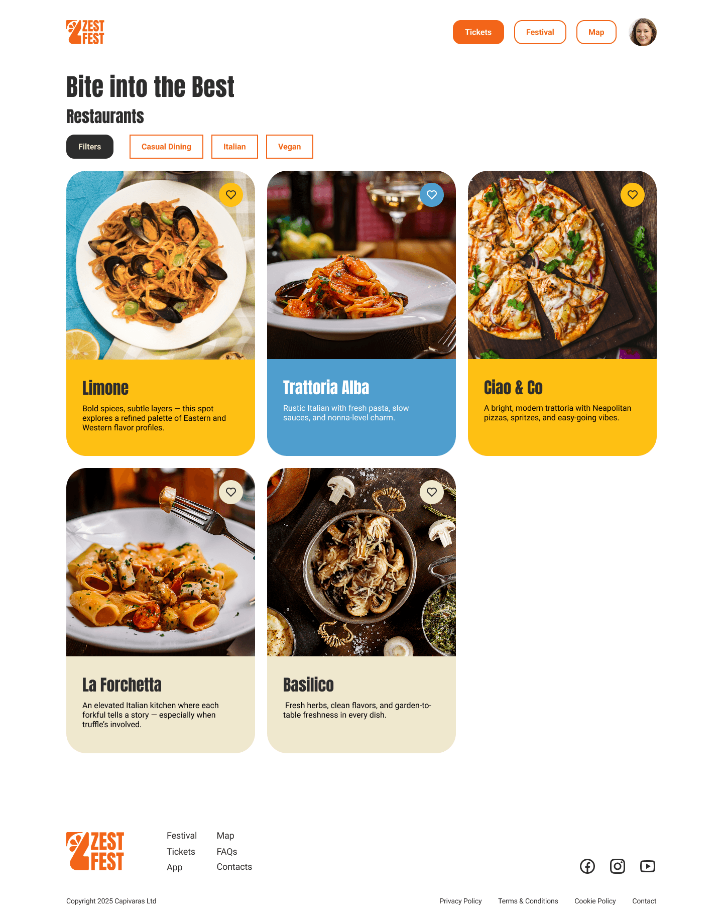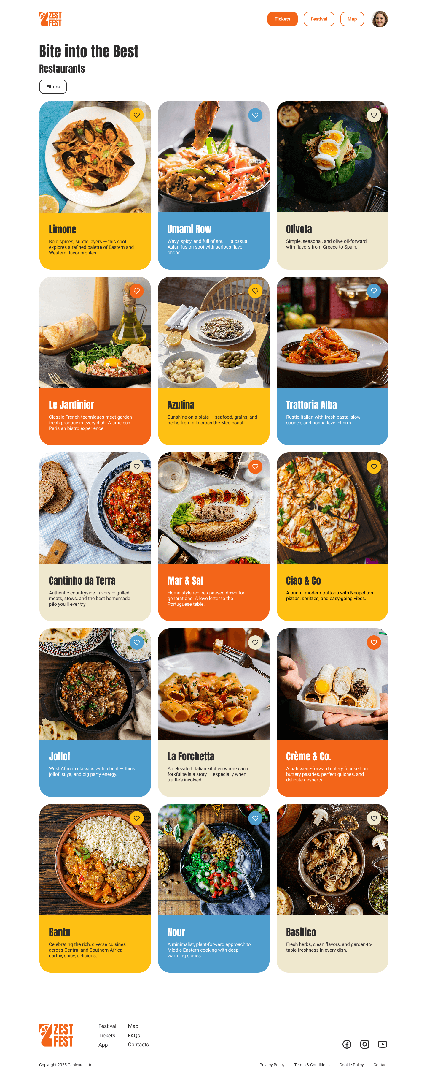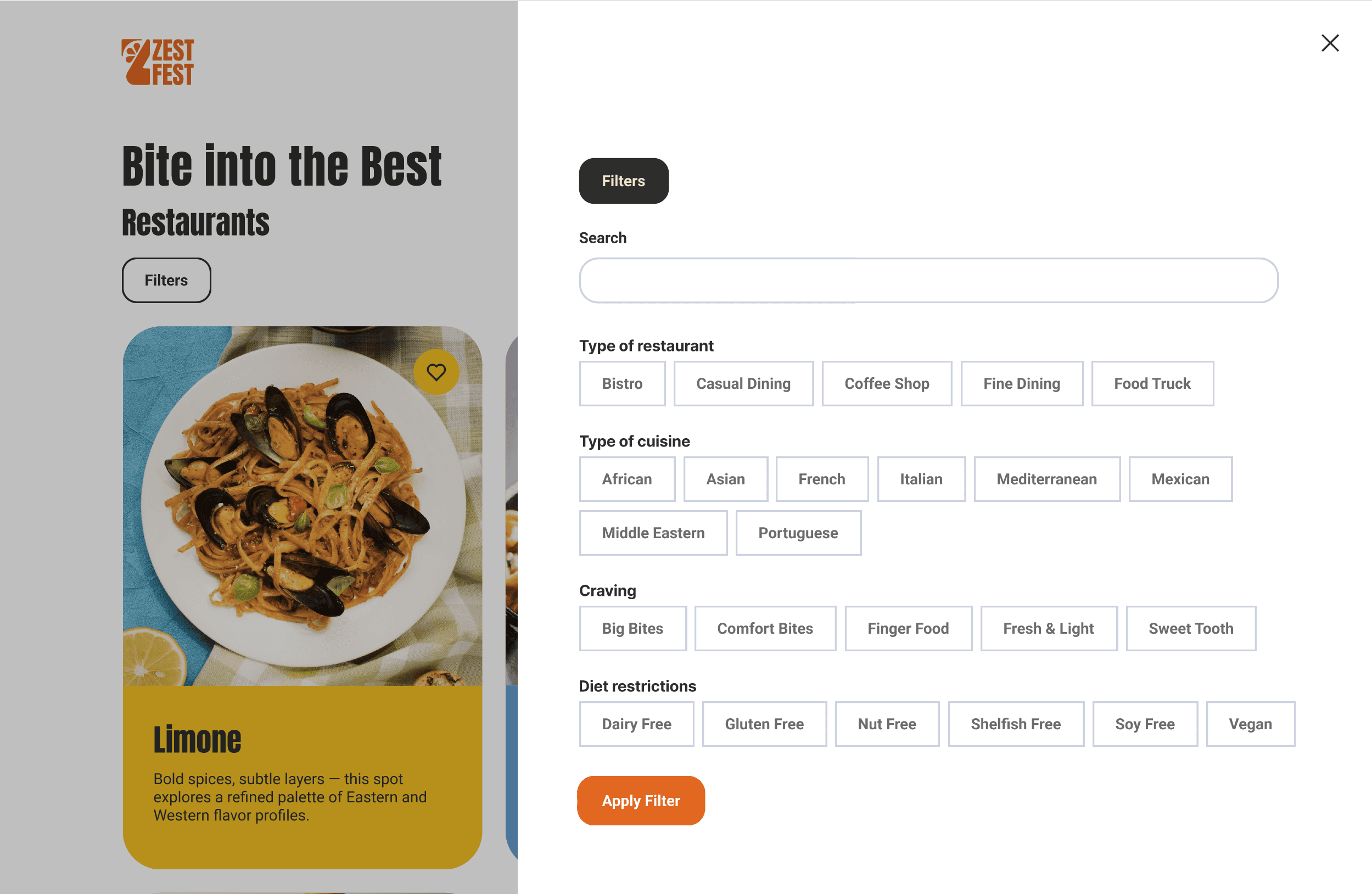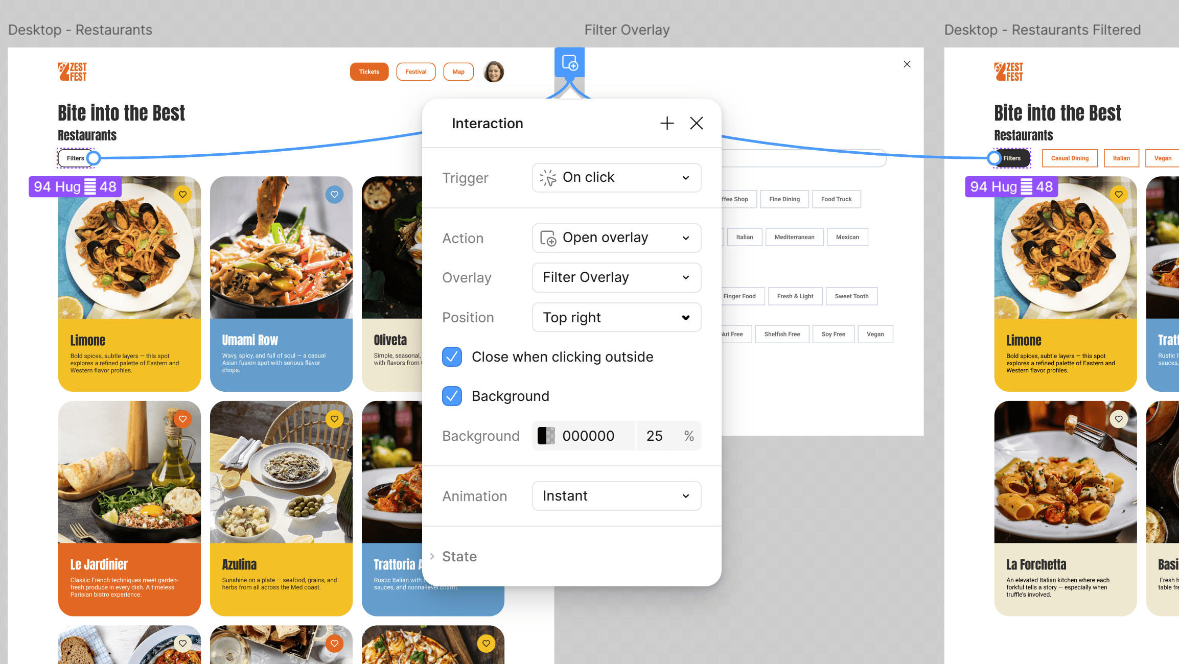 [02] Desktop - Restaurant Page Filters: Home > Login > Home (logged in) > Festival (I wanna know) > Restaurants > Filters > Restaurants page (with applied filters)